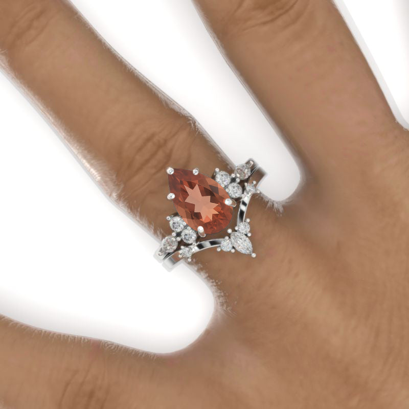 Engagement Ring: 3 Carat Ethically Lab-Grown Zultanite Grade AAA+ Pear 11x7mm VG-Cut, Ex-Polish, VG-Symmetry Center Stone with 124 Colorless