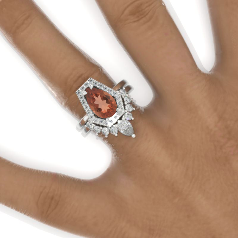 3 Carat Pear Zultanite Halo Engagement Ring. Eternity Ring Set