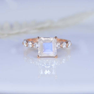 3 Carat Princess Cut Genuine Moonstone Engagement Ring 14K Rose Gold - Giliarto