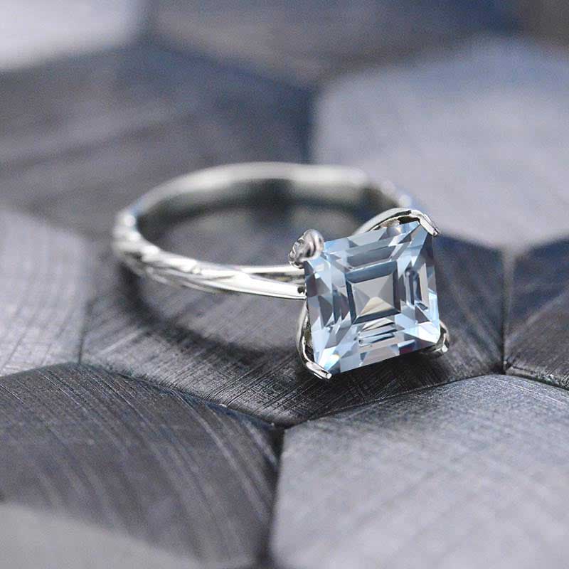 3 Carat Princess Cut Genuine Natural Aquamarine 14K White Gold Engagem - Giliarto