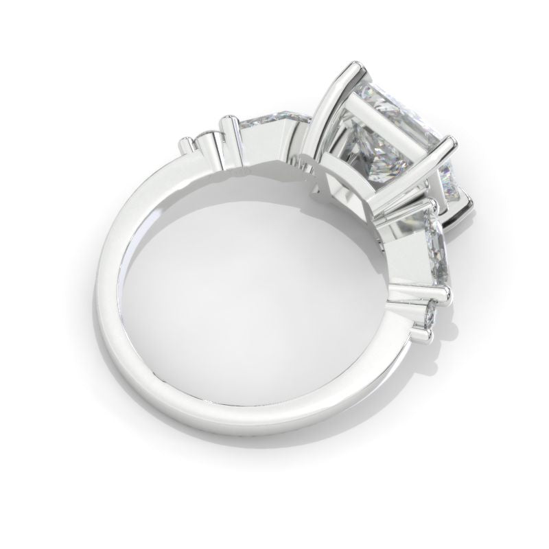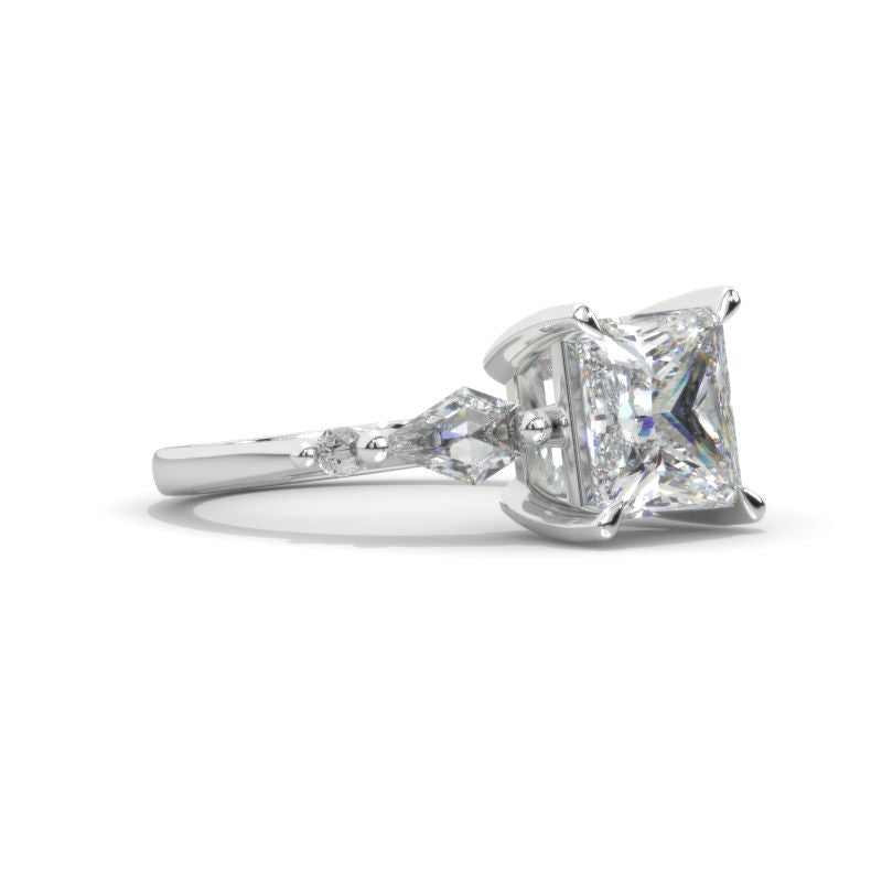Approximately 3+ Carat LAB-Grown Diamond Stones (Princess 8x8mm, D-Colorless, VVS1-Clarity, Ex-Cut, Ex-Polish, VG-Symmetry) and Kite Accent Stones (0.4 CTW D-Colorless, VVS1-Clarity) with 14K White Gold.