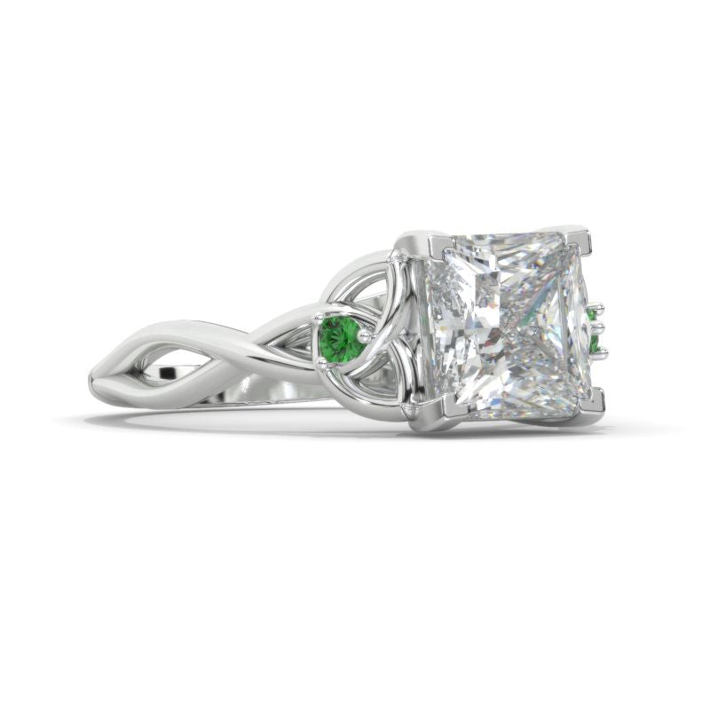 8x8m Princess Cut LAB-Grown Diamond D-Colorless, VVS1-Clarity, VG-Cut, Ex-Polish, VG-Symmetry Center Stone and Emerald Accent Stones in 14K White Gold Ring.Â