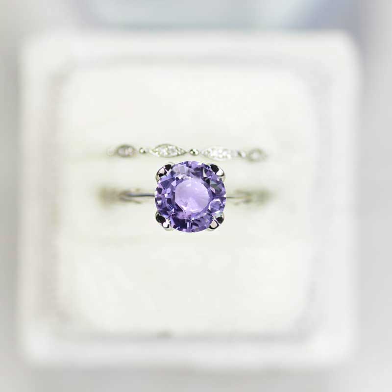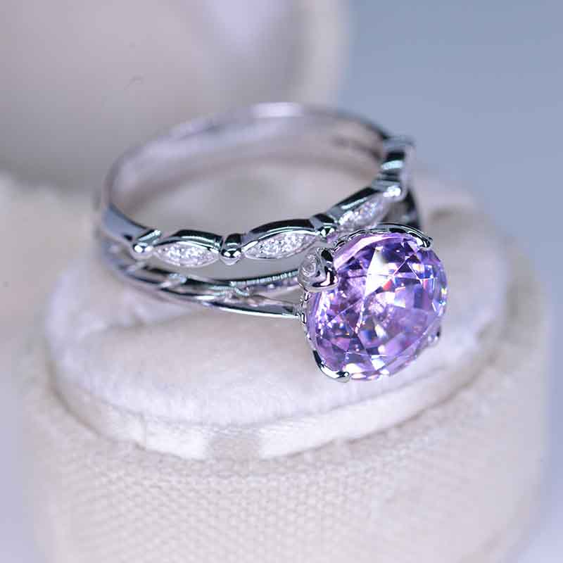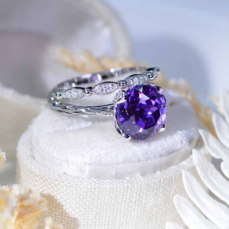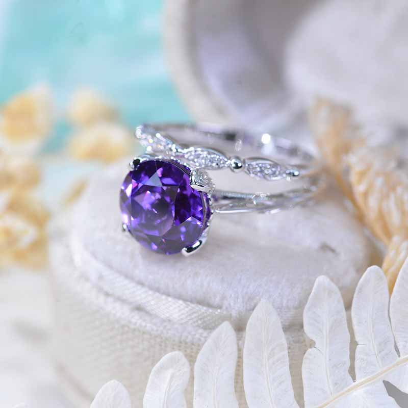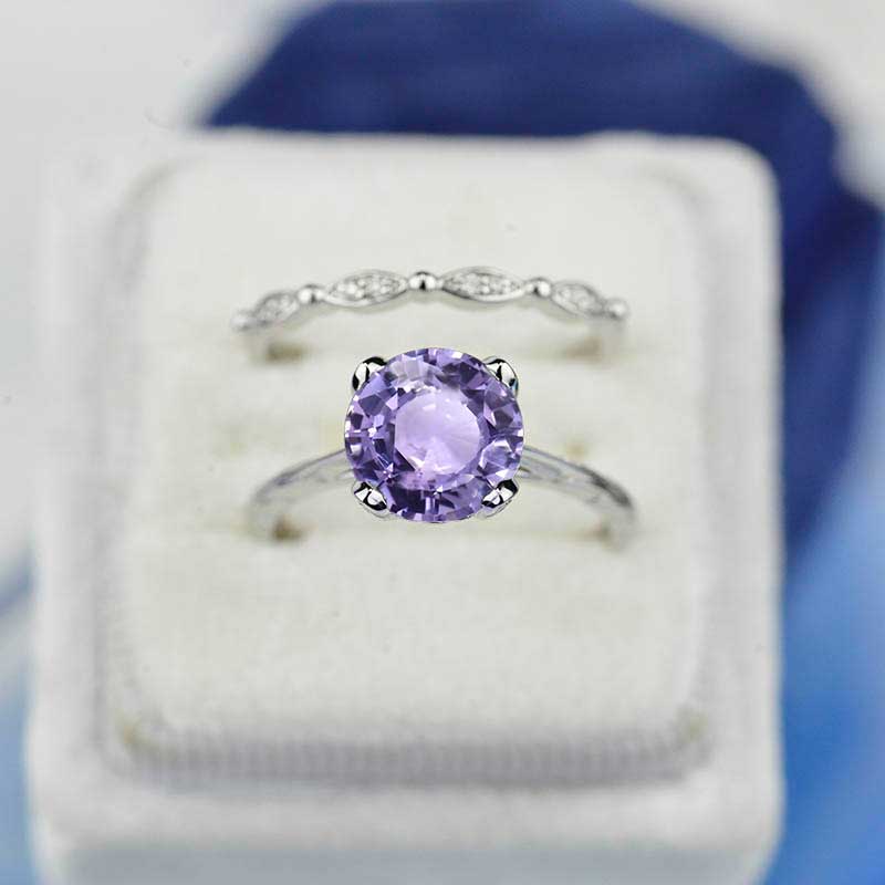 3 Carat Purple Sapphire Engagement Eternity Gold Ring Set