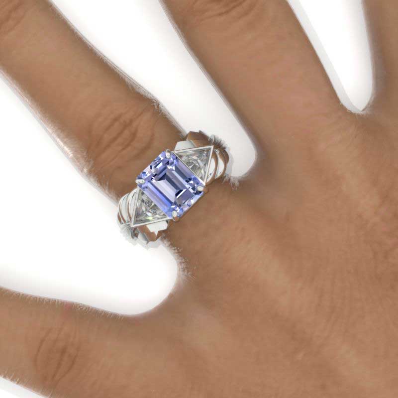 3 Carat Emerald Cut 9x7mm, Ethically Lab-Grown Purple Sapphire VVS1-Clarity, Ex-Cut, Ex-Polish, VG-Symmetry and 2 Accents stones 1.8 CTW in 14K White Gold Men's Ring.