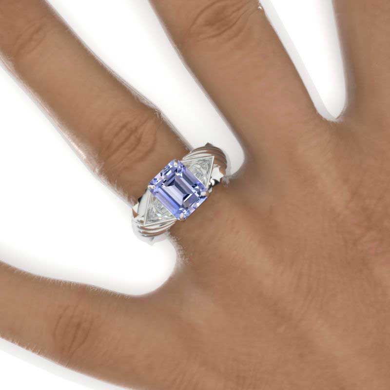 3 Carat Emerald Cut 9x7mm,Ethically Lab-Grown Purple Sapphire VVS1-Clarity, Ex-Cut, Ex-Polish, VG-Symmetry and 2 Accents stones 1.8 CTW in 14K White Gold Men's Ring.
