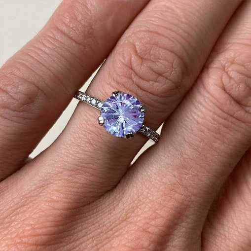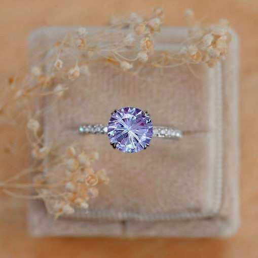 3 Carat Round Fireworks Cut Alexandrite Silver White Gold Plated Ring, - Giliarto