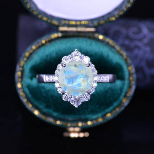 3 Carat Round Genuine Moonstone Halo Gold Engagement Ring - Giliarto