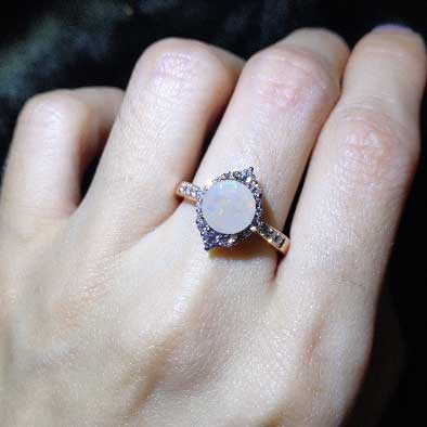 3 Carat Round Genuine White Opal Halo Gold Engagement Ring