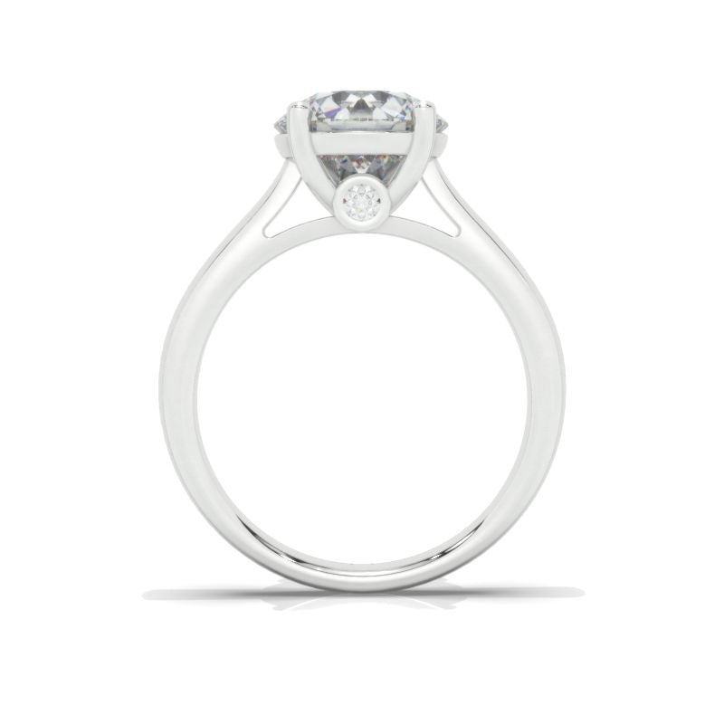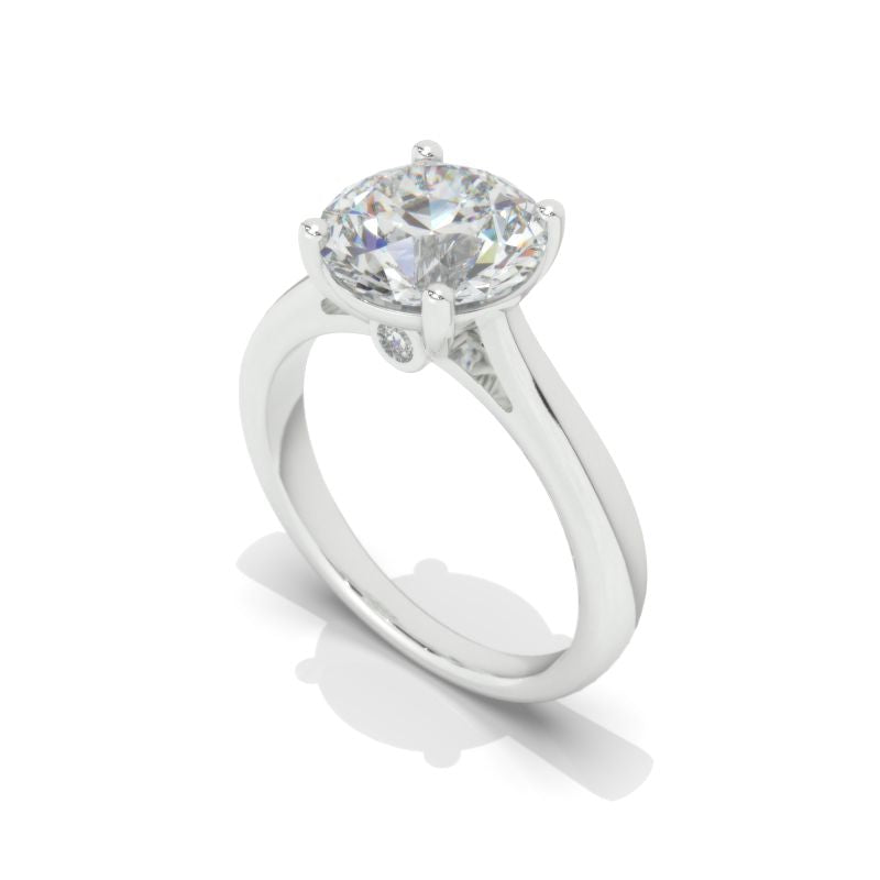 The default design option features approximately 3+ Carat LAB-Grown Diamond Round 9mm D-Colorless, VVS1-Clarity, VG-Cut, Ex-Polish, VG-Symmetry Center Stone set with D- Colorless LAB-Grown Diamond Accent Stones (Colorless)