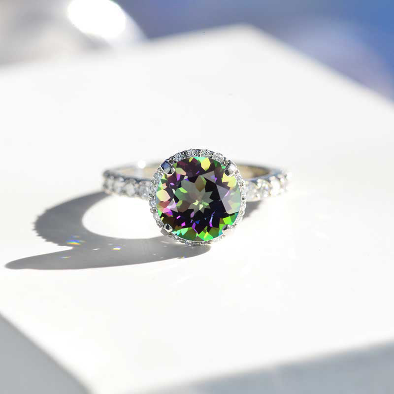 3 Carat Round Mystic Topaz Halo Gold Engagement Ring - Giliarto