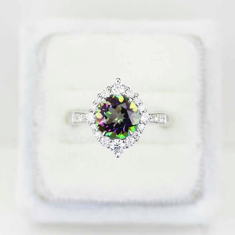 3 Carat Round Mystic Topaz Halo Gold Engagement Ring - Giliarto