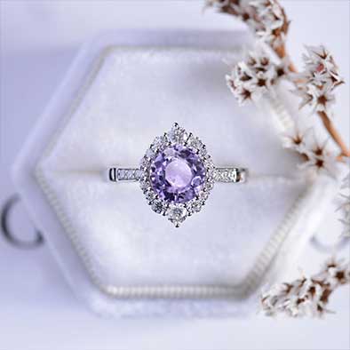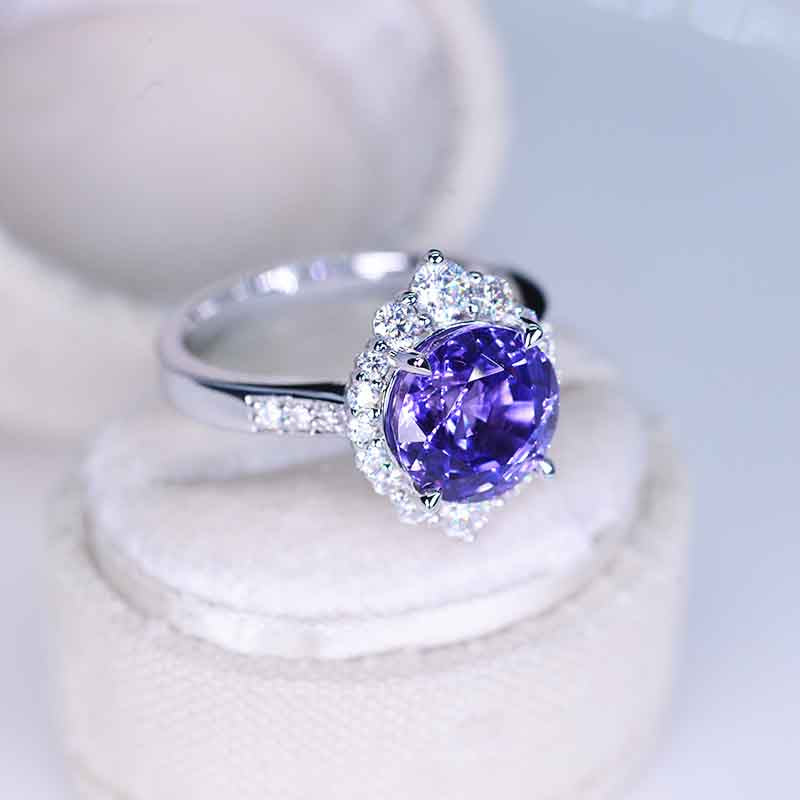 3 Carat Round Purple Sapphire Halo Gold Engagement Ring