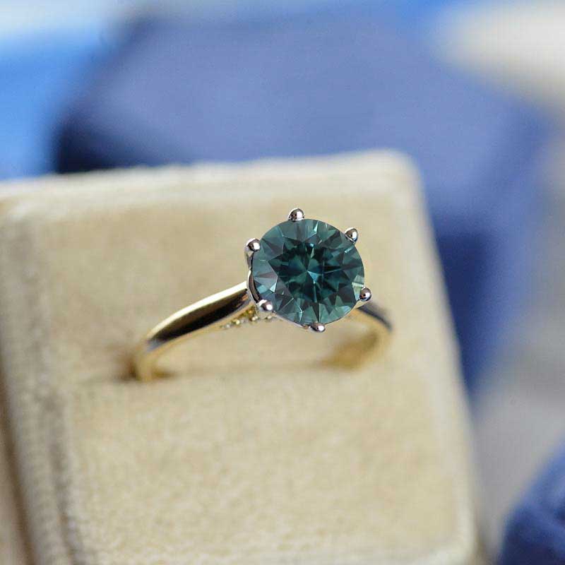 3 Carat Teal Sapphire Six Prongs Engagement Ring