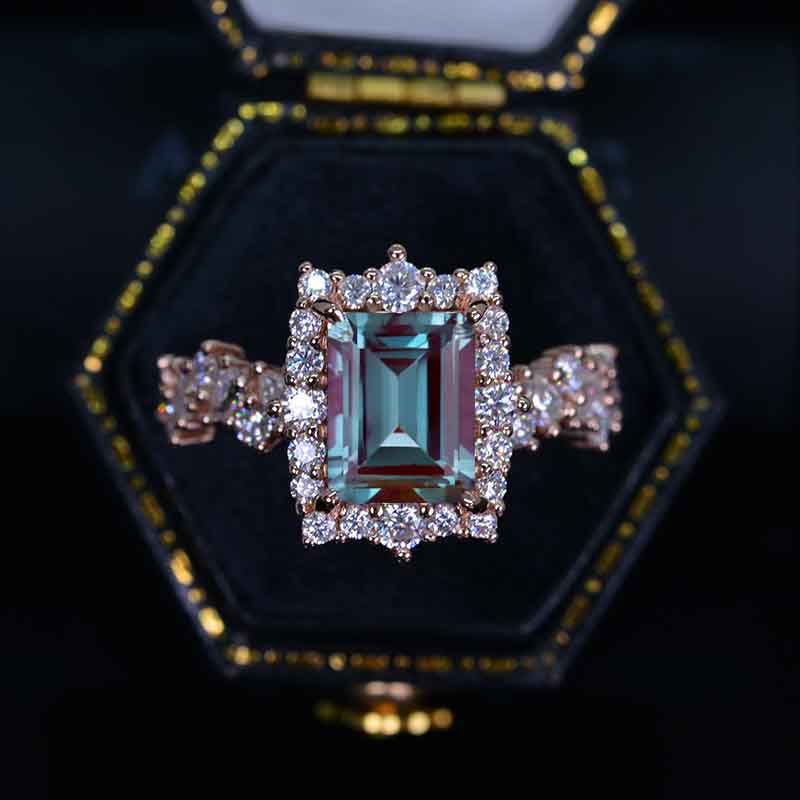 3 Carat Vintage Style 9x7mm Emerald Cut Halo Alexandrite Rose Gold Flo - Giliarto