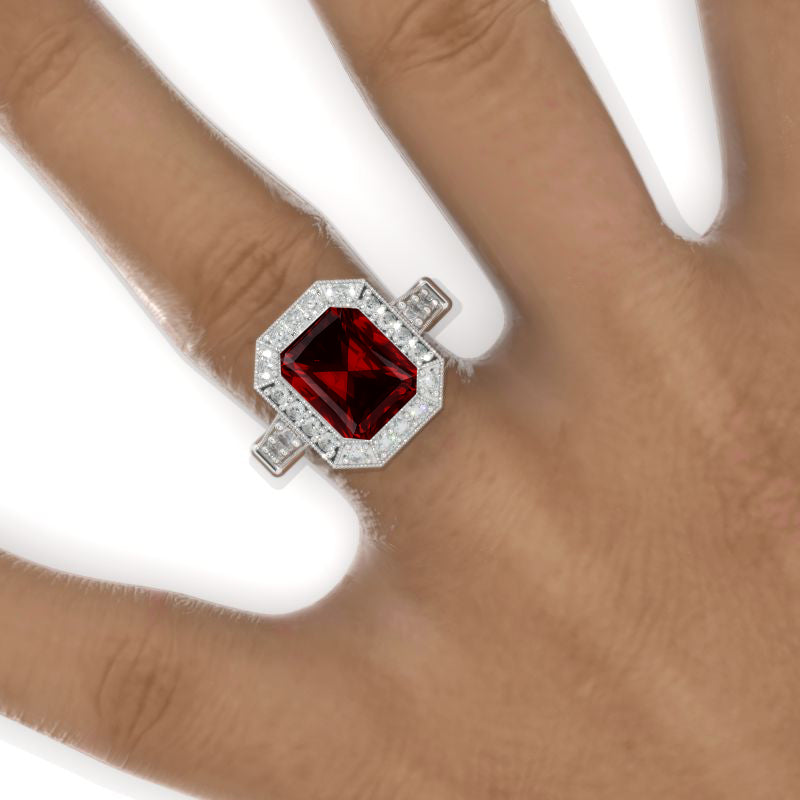 3 Carat Vintage Style Emerald Cut Ruby White Gold Engagement Ring - Giliarto