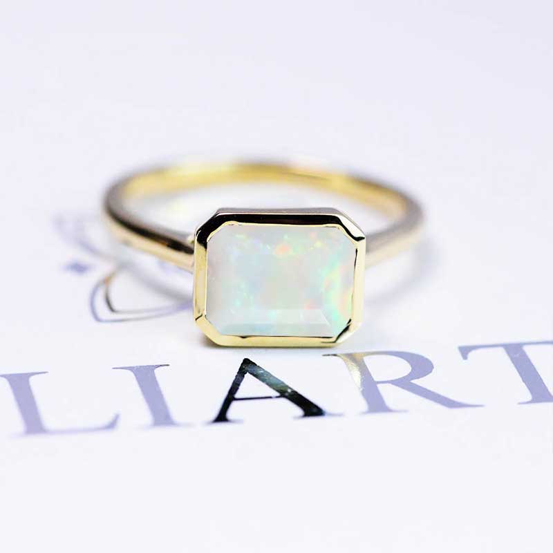 3 Carat White Opal Engagement Ring, Bezel Set Emerald Cut White Opal E - Giliarto