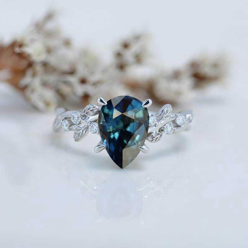 3 CaratTeal Sapphire Pear Cut Floral White Gold Engagement Ring - Giliarto