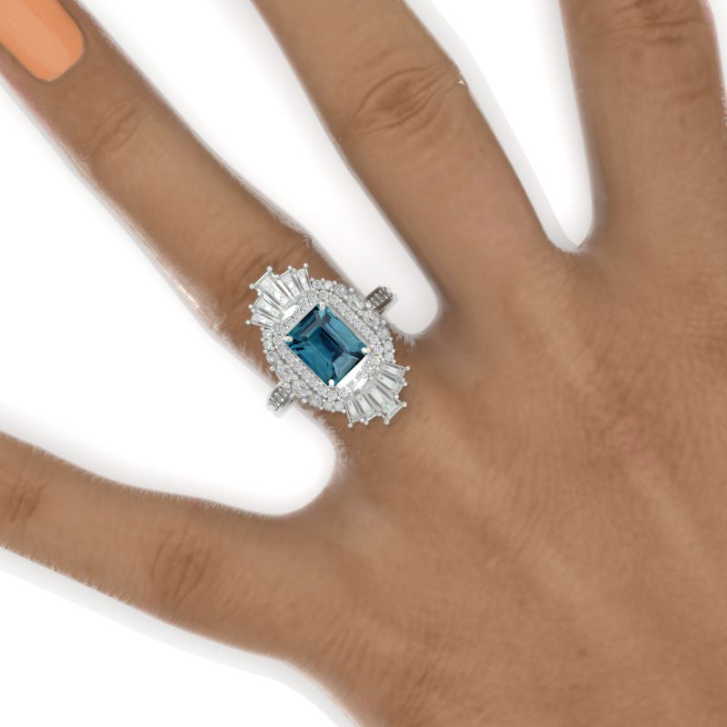 3 CT Emerald Halo Teal Sapphire Vintage Wedding Ring. 14K Solid Gold E - Giliarto