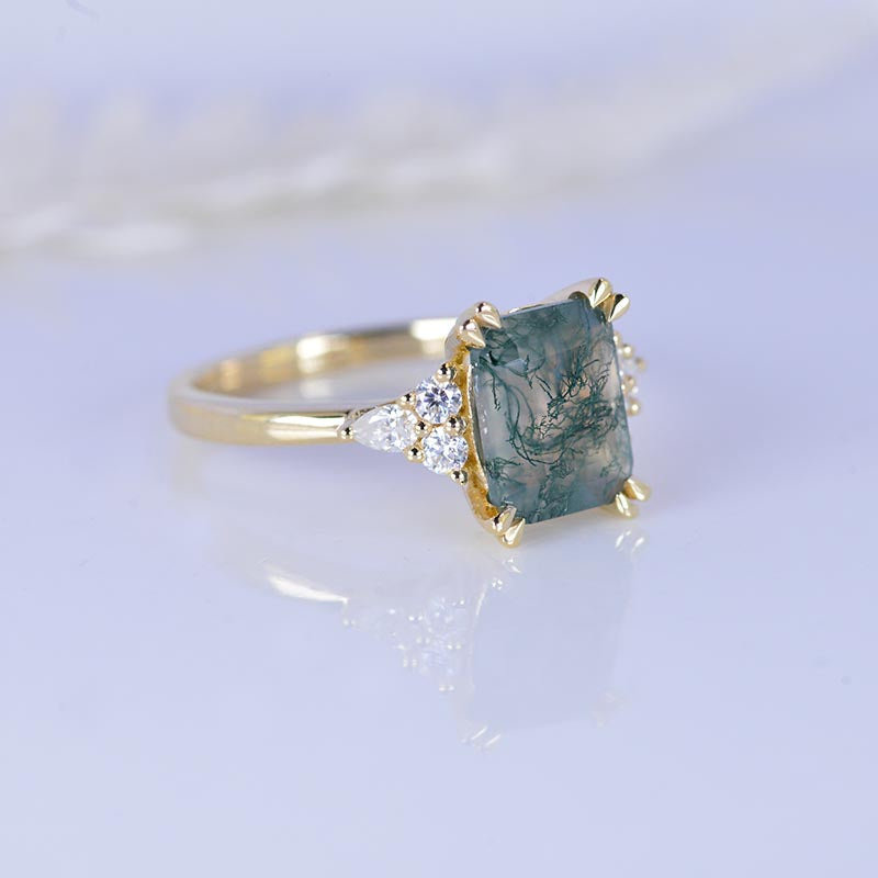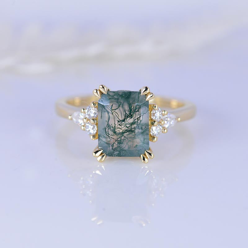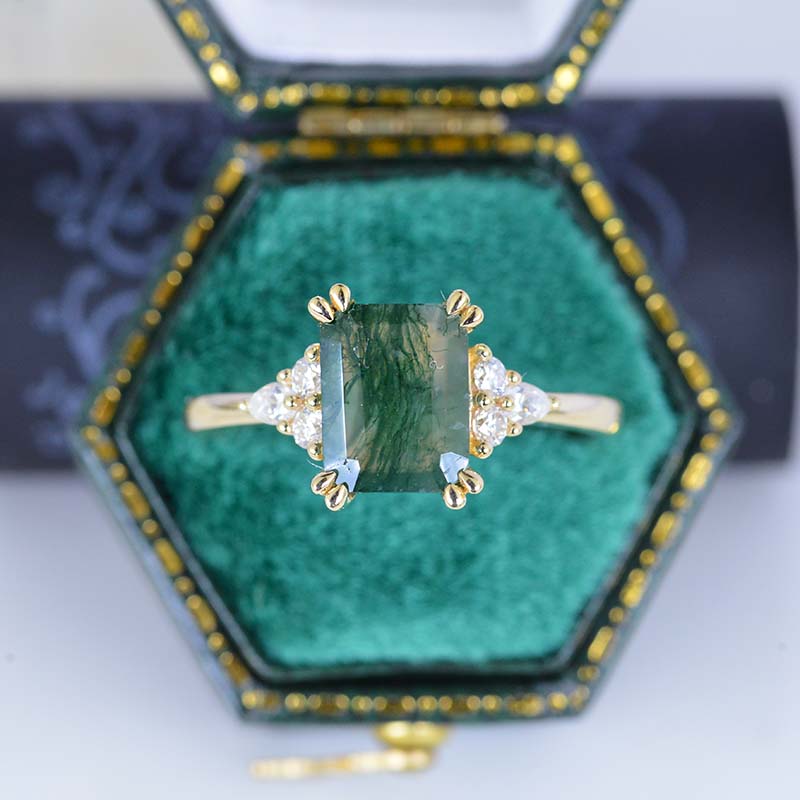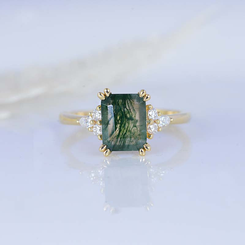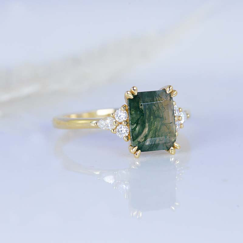 3 Ct Emerald Step Cut Green Moss Agate Vintage Engagement Ring, Marqui - Giliarto