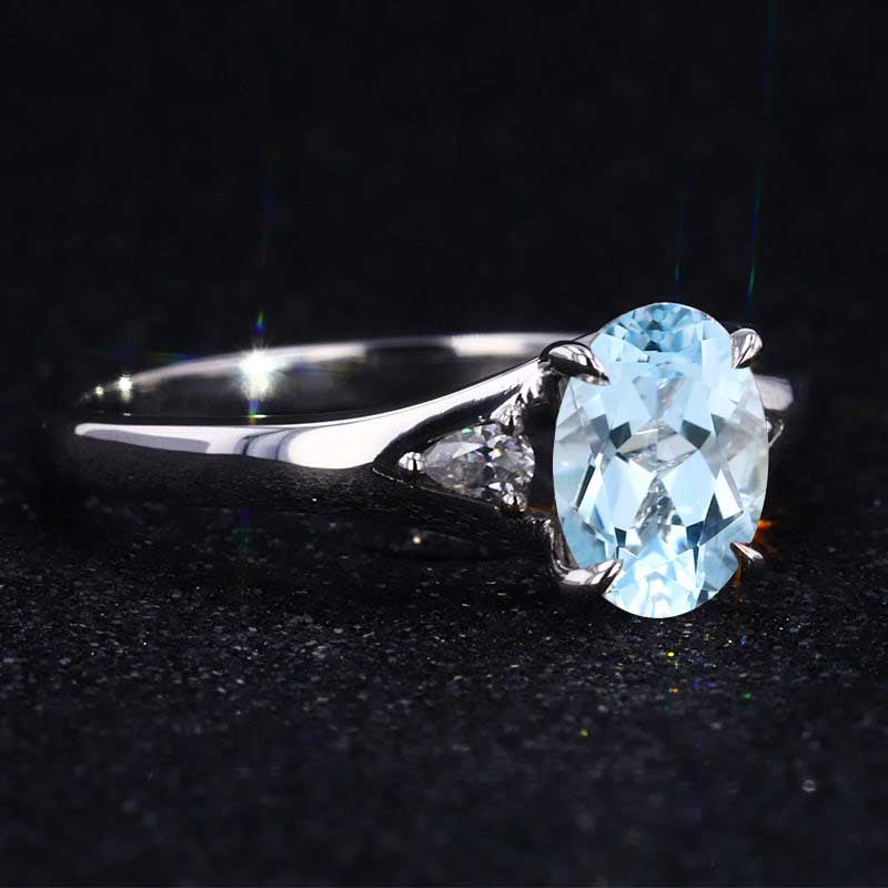 3 ct Oval Genuine Natural Aquamarine 14K White Gold Engagement Ring - Giliarto