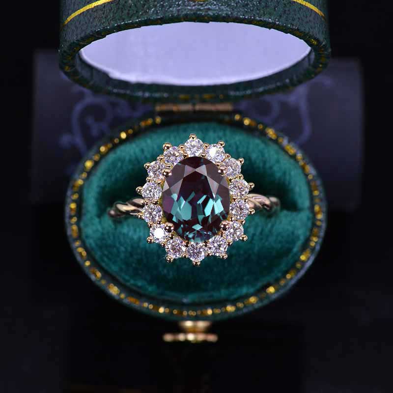 3 CT Oval Halo Alexandrite Vintage Wedding Ring. 14K Solid Gold Engage - Giliarto
