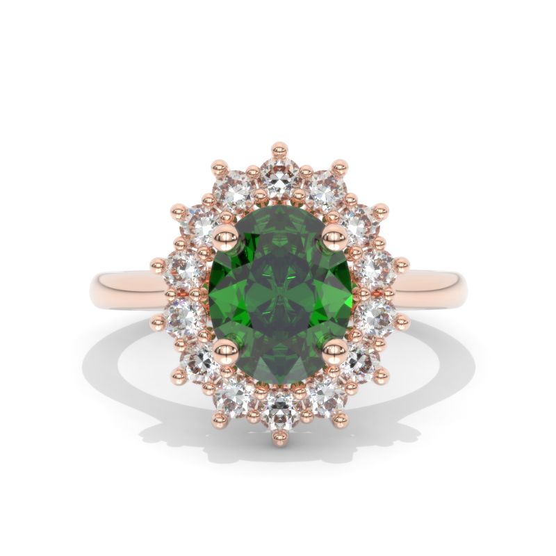 The default design option features 3Ā Carat Ethically Lab-Grown Emerald 10x8mm Oval Center Stone,Ā