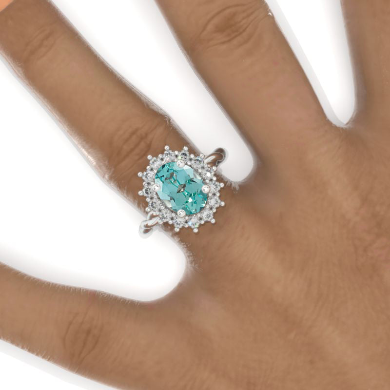 3 CT Oval Halo Mint Sapphire Vintage Wedding Ring. 14K Solid Gold Enga - Giliarto