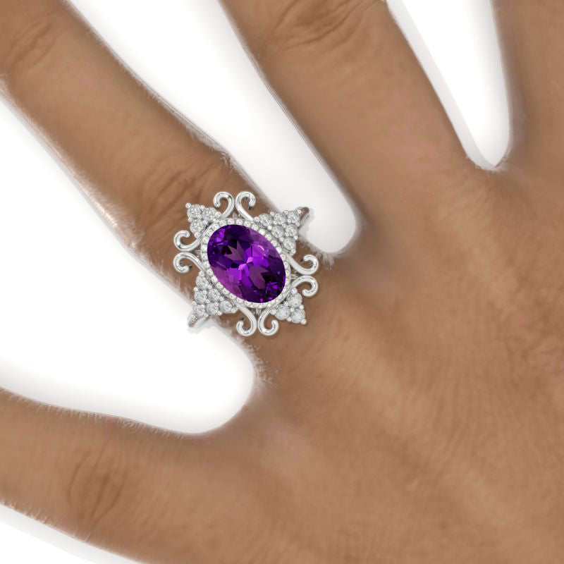 3 CT Oval Halo Natural Amethyst Vintage Wedding Ring. 14K Solid Gold E - Giliarto