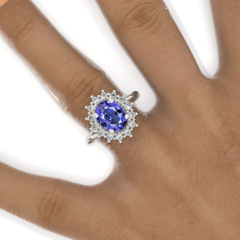 3 CT Oval Halo Natural Genuine Tanzanite Vintage Wedding Ring. 14K Sol - Giliarto
