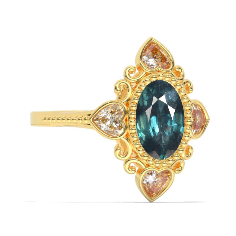 3 CT Oval Halo Teal Sapphire Vintage Wedding Ring. 14K Solid Gold Engagement Ring Anniversary Ring, Heart Halo Ring