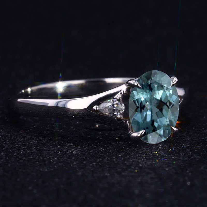 3 ct Oval Teal Sapphire 14K White Gold Engagement Ring - Giliarto