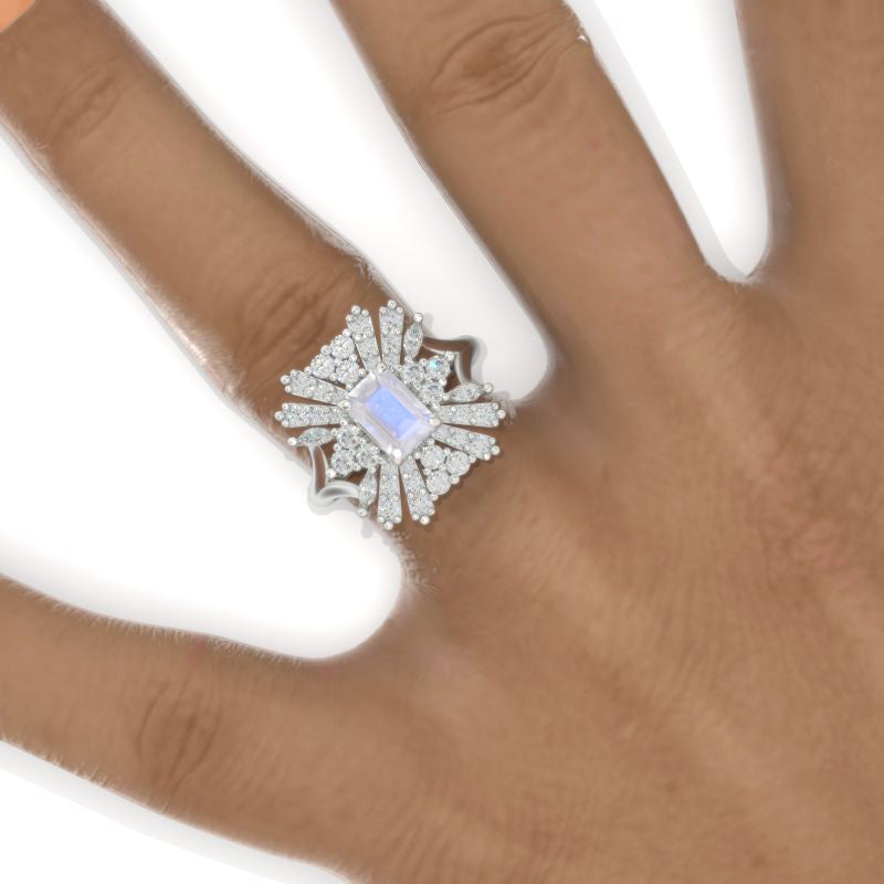 3 CTW Genuine Natural Moonstone Cluster Halo Engagement Ring Vintage A - Giliarto