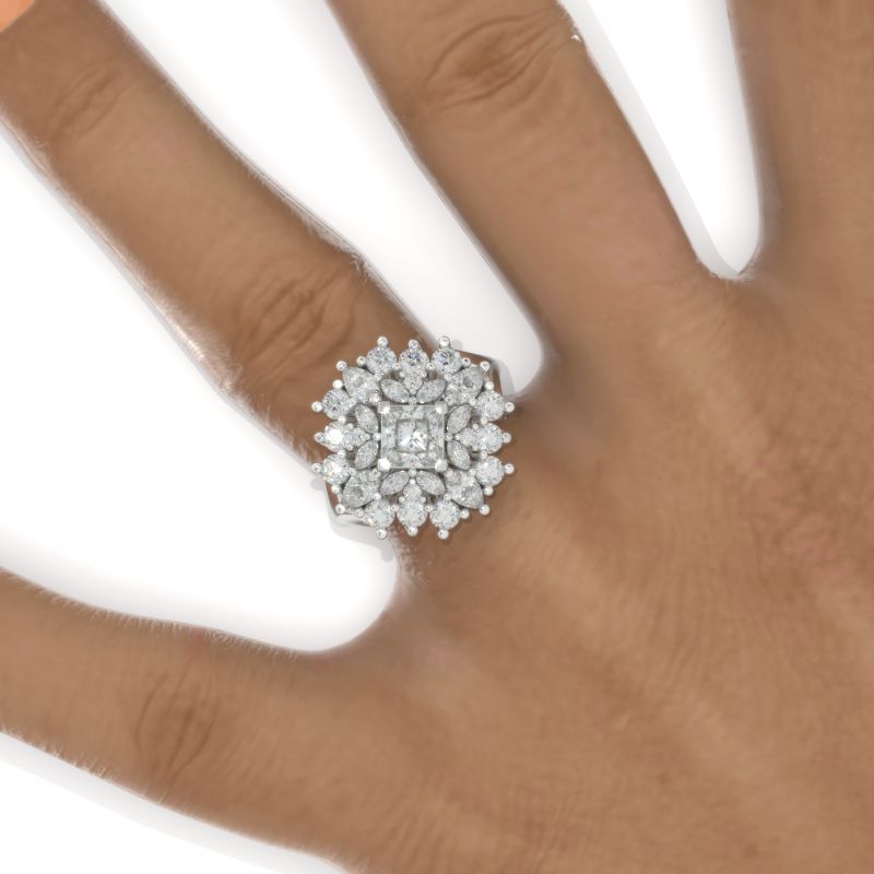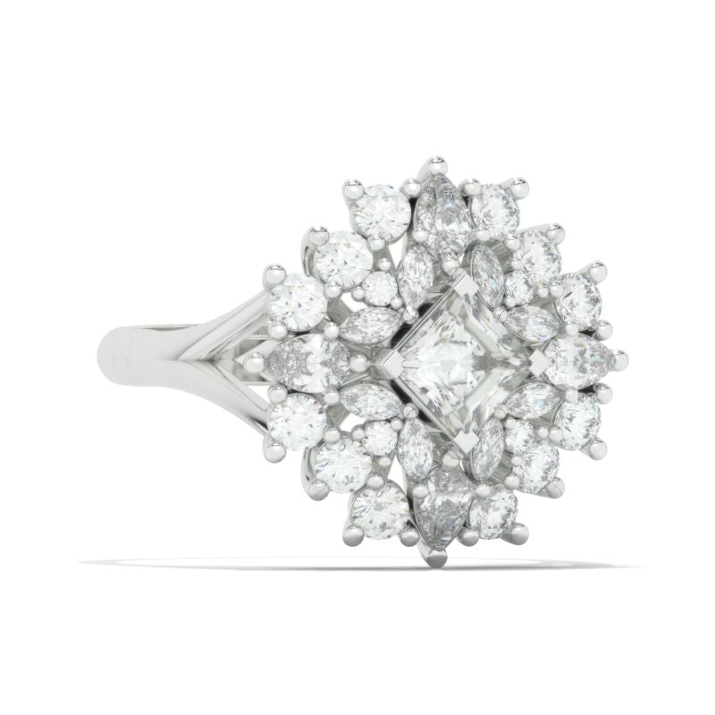 The default design option features Approximately 3+ CTW Cluster LAB-Grown Diamond Ā Stones,Ā D-ColorlessĀ VVS11-Clarity, VG-Cut, Ex-Polish, VG-Symmetry