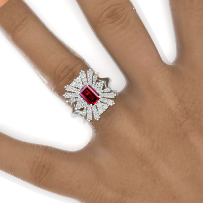 3 CTW Ruby Cluster Halo Engagement Ring Vintage Anniversary Gold Ring - Giliarto