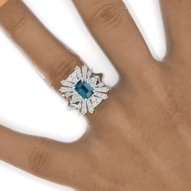 3 CTW Teal Sapphire Cluster Halo Engagement Ring Vintage Anniversary G - Giliarto