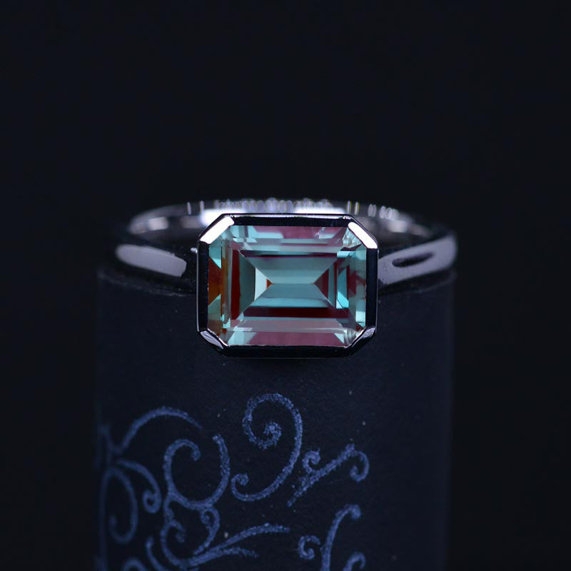 3Ct Alexandrite Engagement Ring, Bezel Set Emerald Cut Alexandrite Eng - Giliarto