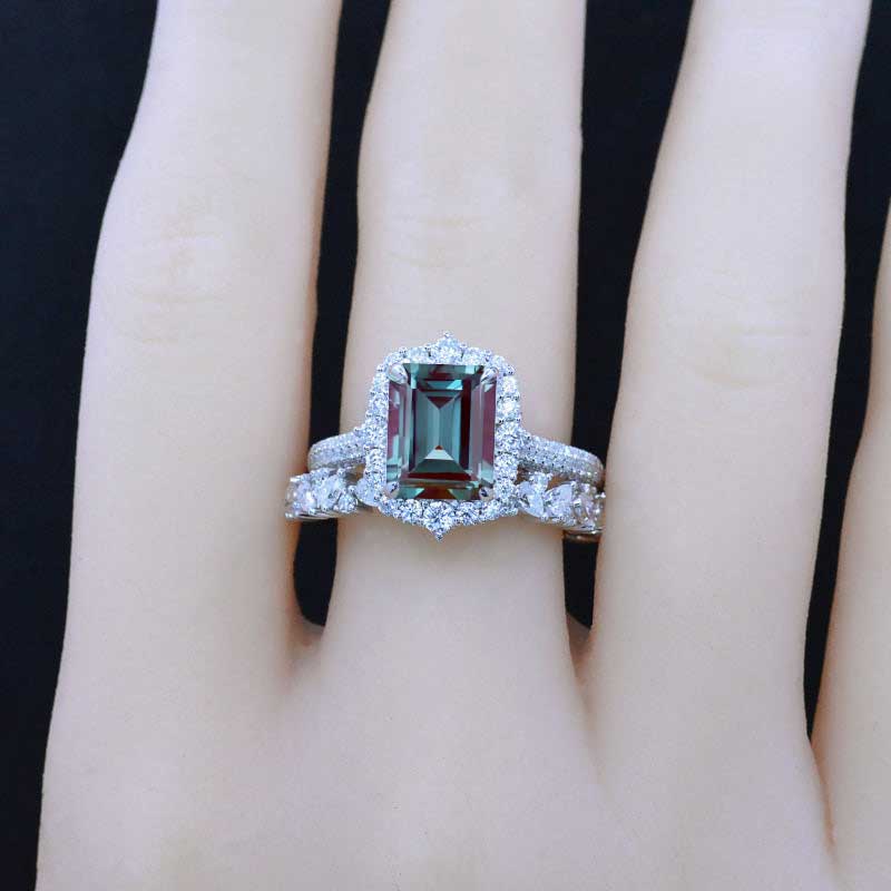 3Ct Alexandrite Engagement Ring Halo Radiant Cut Alexandrite Black Gold Engagement Ring