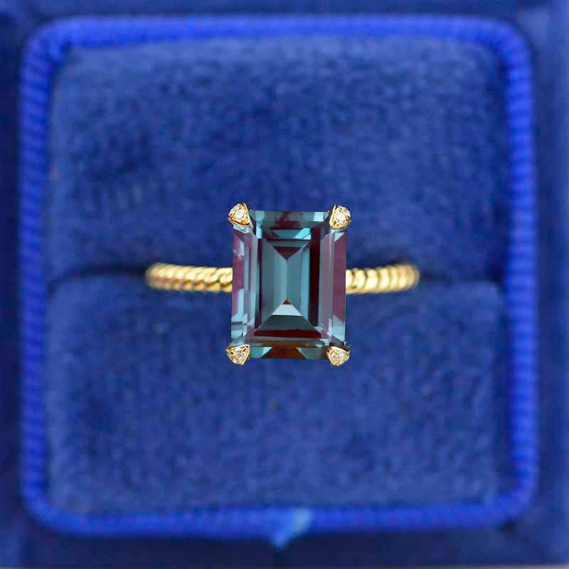 3Ct Alexandrite Engagement Ring, Radiant Cut Alexandrite Yellow Gold E - Giliarto