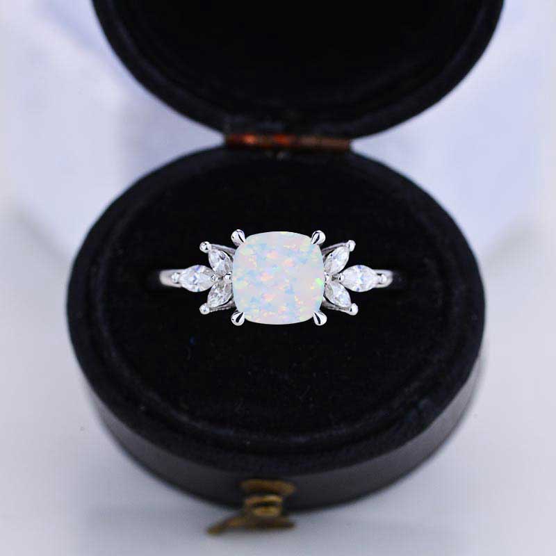 3Ct Cushion Genuine White Opal Engagement Ring, Cushion Genuine White - Giliarto