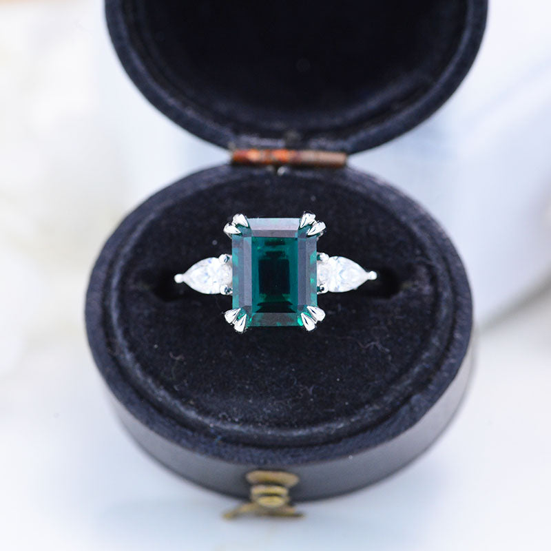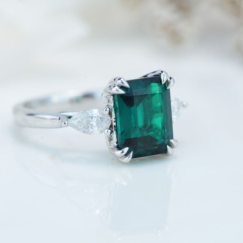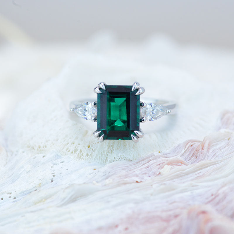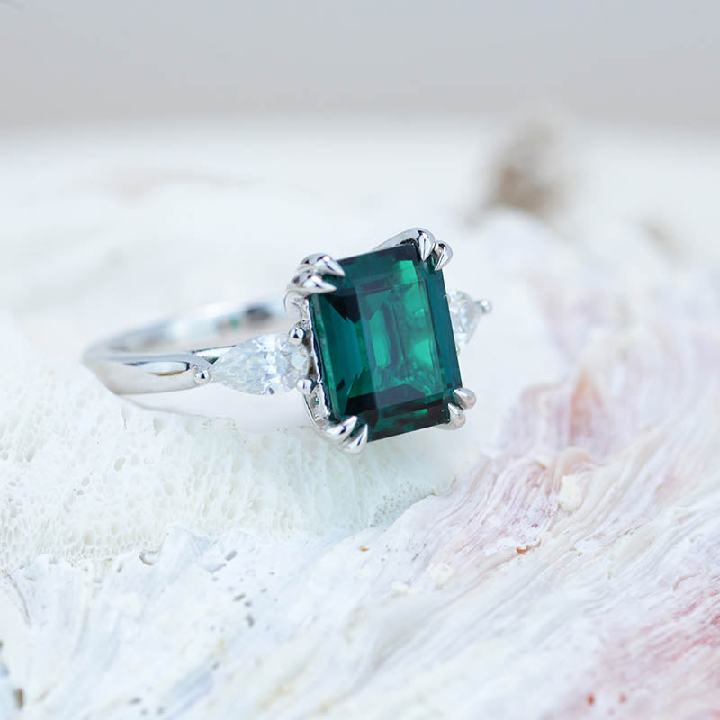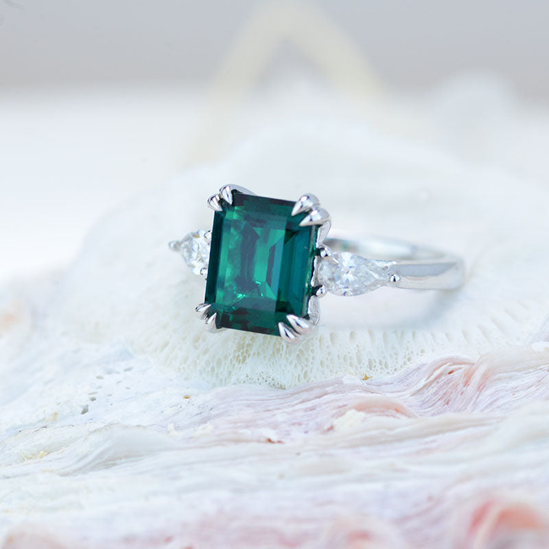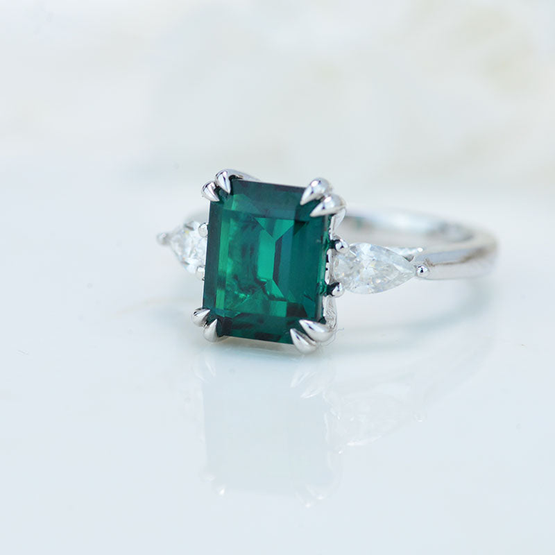 The default design option features 9x7mm Emerald Cut LAB-Grown EmeraldĀ CenterĀ Stone,Ā