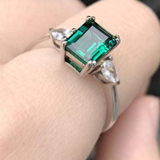 3Ct Emerald Cut Emerald Stone 14K White Gold Ring