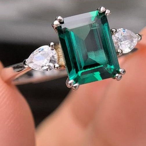 3Ct Emerald Cut Emerald Stone 14K White Gold Ring - Giliarto