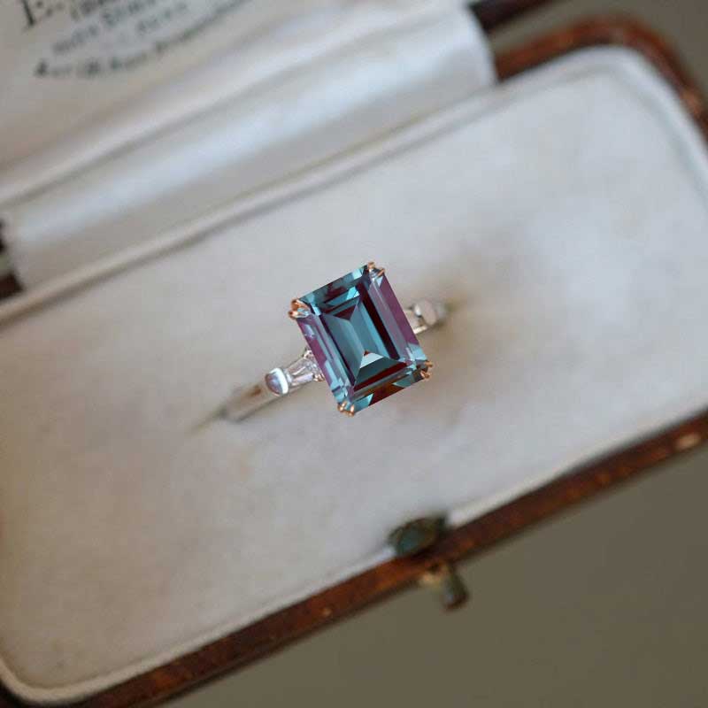 3Ct Emerald Cut Alexandrite Ring, Alexandrite Ring, Vintage Alexandrit - Giliarto