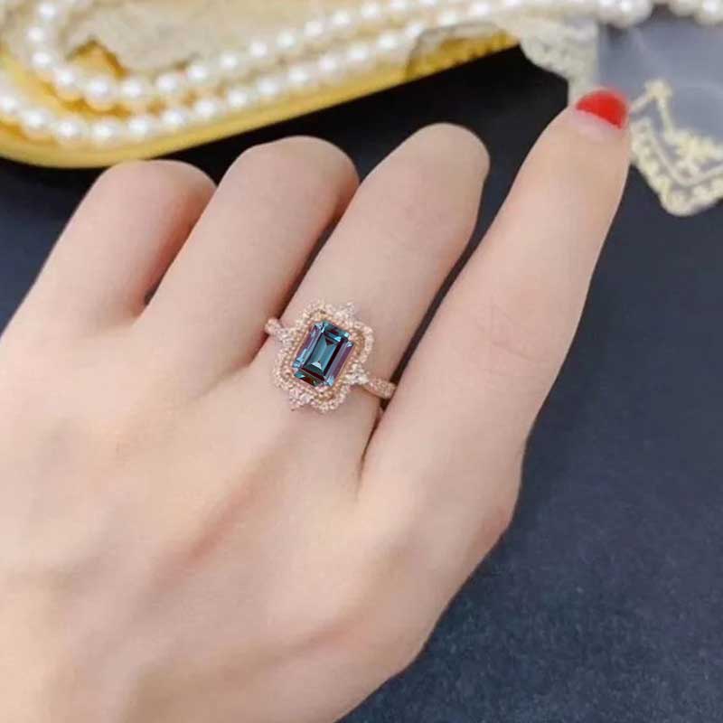 3Ct Emerald Cut Halo Alexandrite Ring, Alexandrite ring, Vintage Alexandrite Ring, Alexandrite Emerald Cut Ring