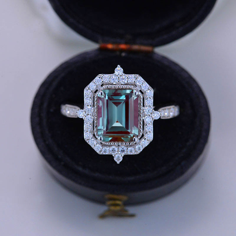 3Ct Emerald Cut Halo Alexandrite Ring, Alexandrite ring, Vintage Alexa - Giliarto