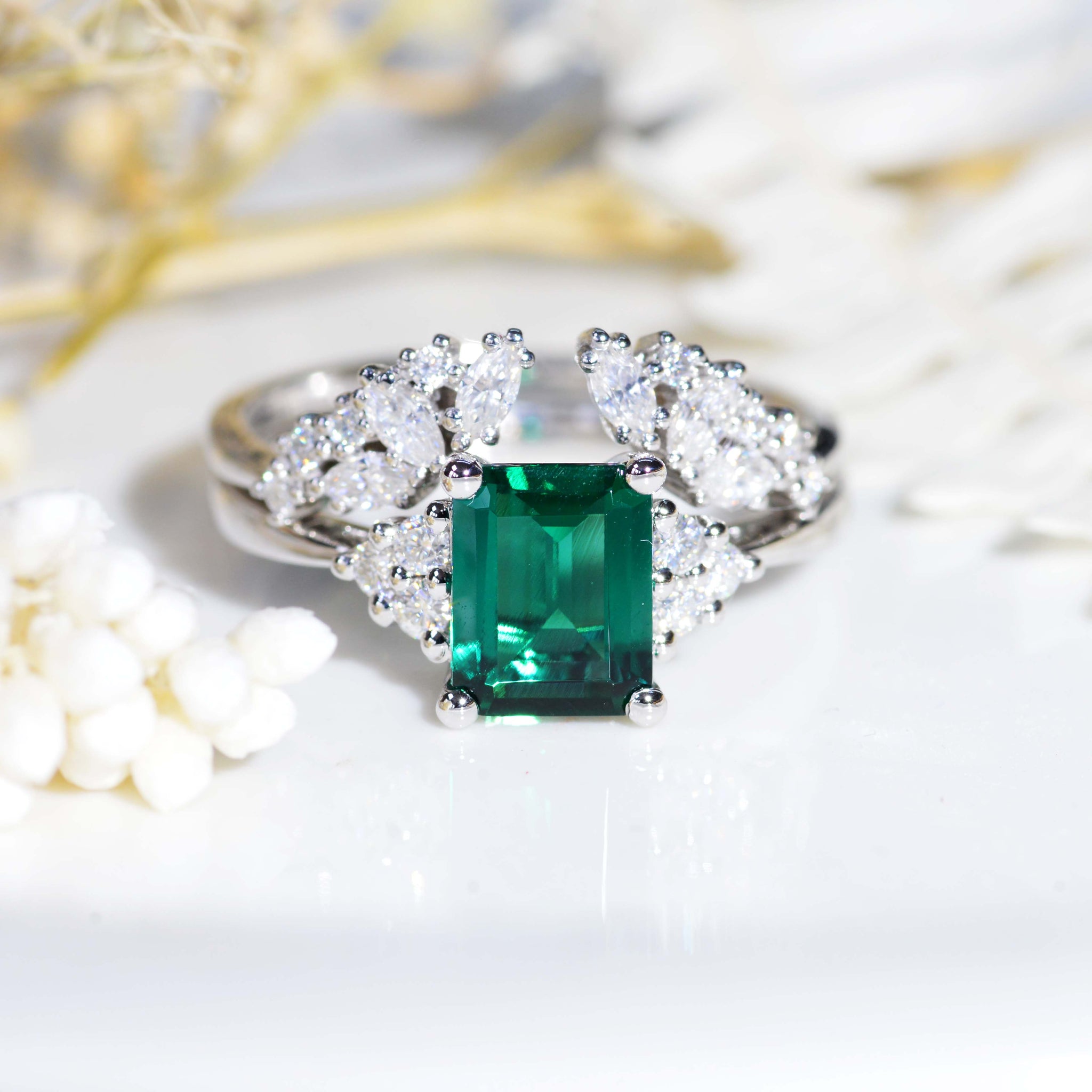 3Ct Emerald Shape Step Cut Emerald Ring, Solitaire ring, 3 Carat Emerald Ring, Emerald Vintage Ring Set