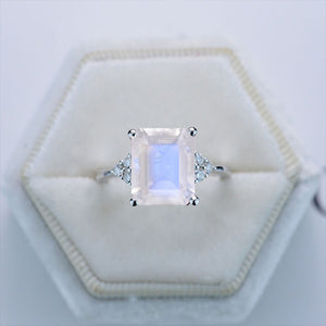 3Ct Emerald Shape Step Cut Genuine Moonstone ring, Opal solitaire ring - Giliarto