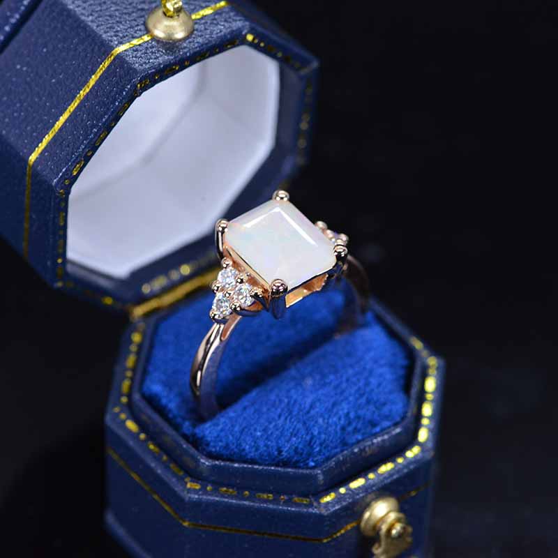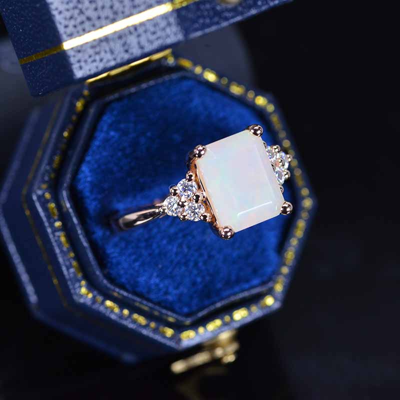 3Ct Emerald Shape Step Cut White Opal ring, Opal solitaire ring, 3 Car - Giliarto