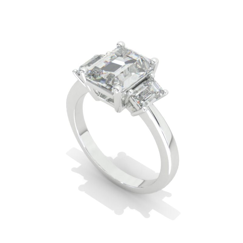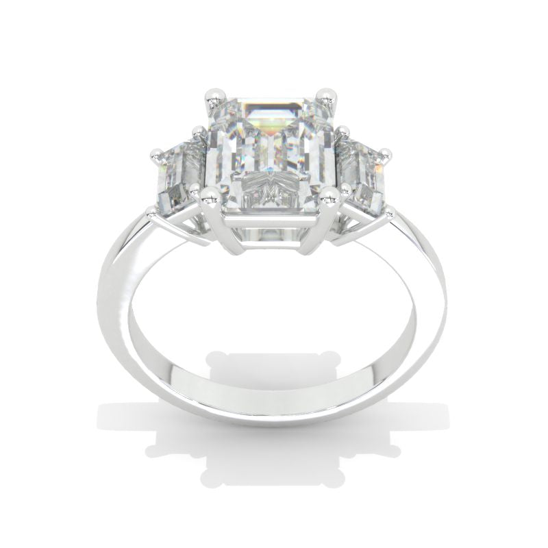 3Ct Emerald Shaped LAB-Grown Diamond Gold Engagement Ring, Three Stone LAB-Grown Diamond Engagement Ring Model 702