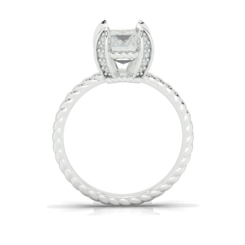 3Ct Emerald Shaped Step Cut LAB-Grown Diamond Gold Engagement Rope Shank Ring Model 710-9x7mm
